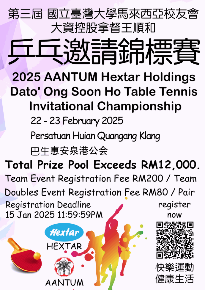 第三屆 國立臺灣大學馬來西亞校友會大資控股拿督王順和乒乓邀請錦標賽